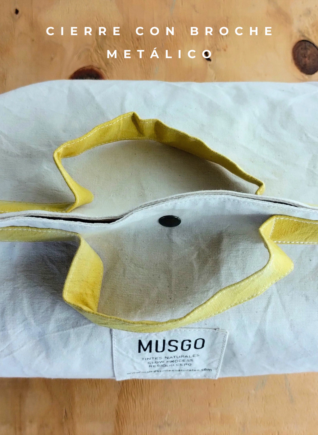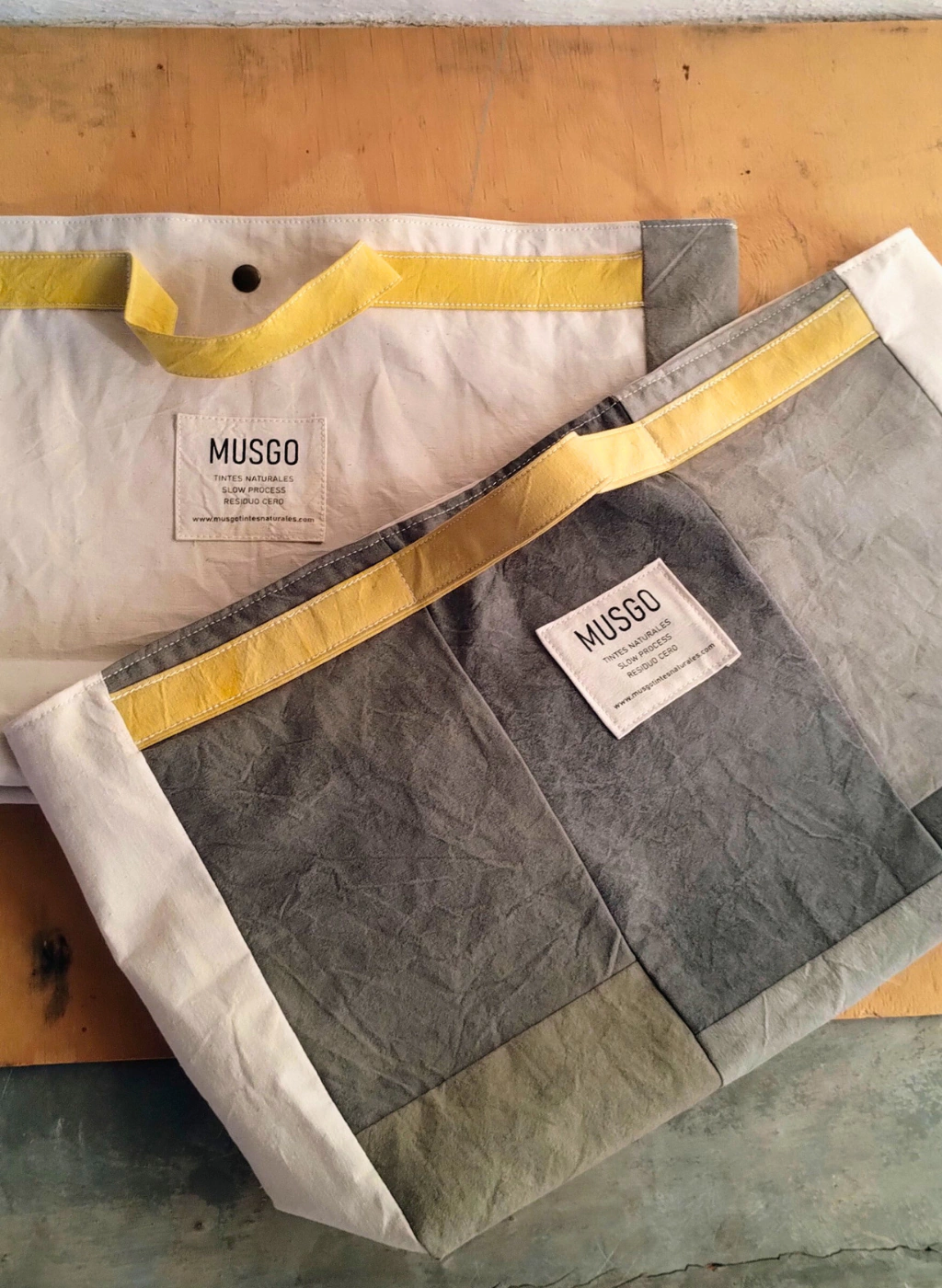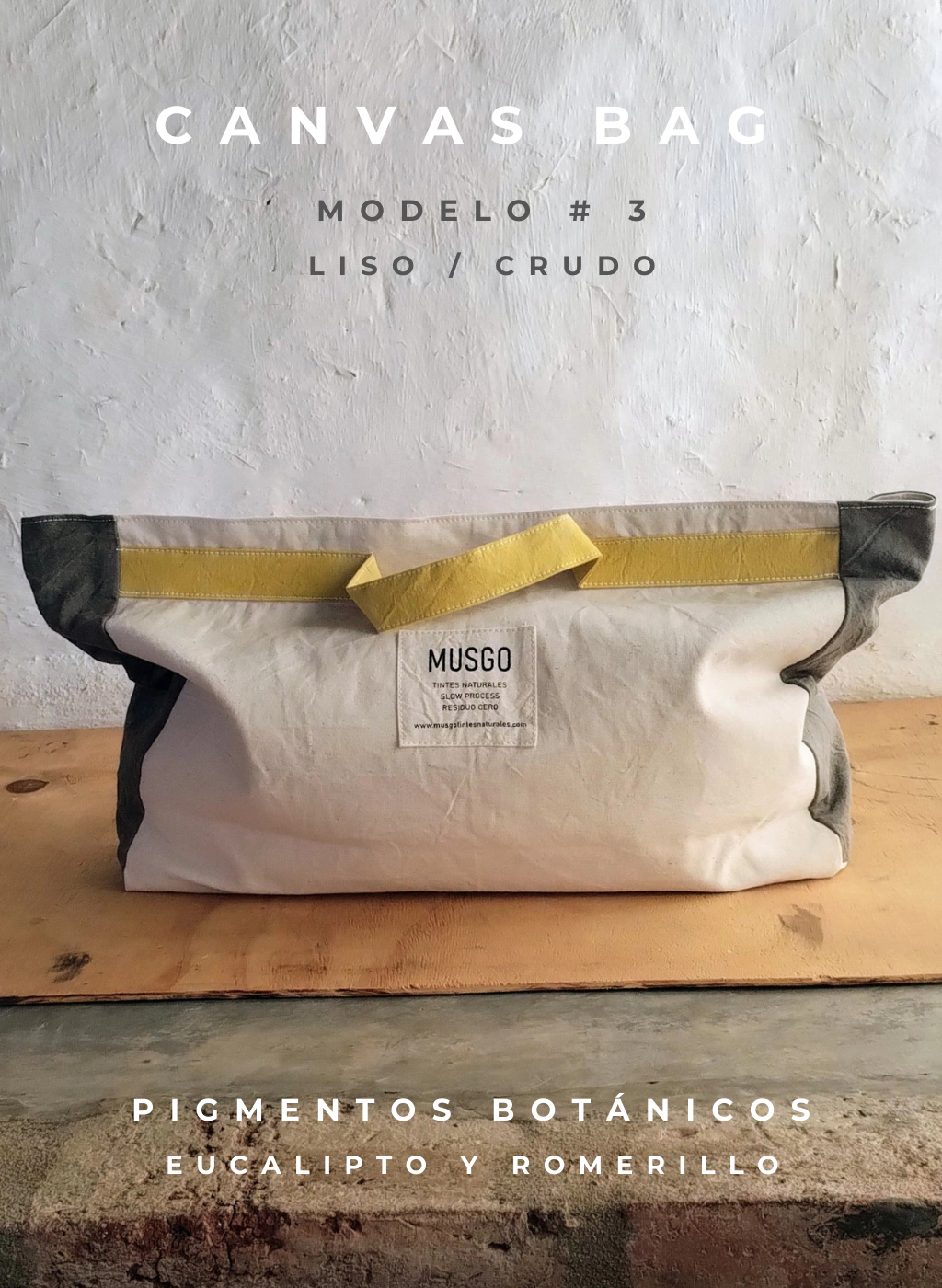 El Canvas Bag es un bolso de mano muy amplio, confeccionado en 100% algodón y teñido de manera artesanal con tintes naturales, logrando una textura única al tacto.